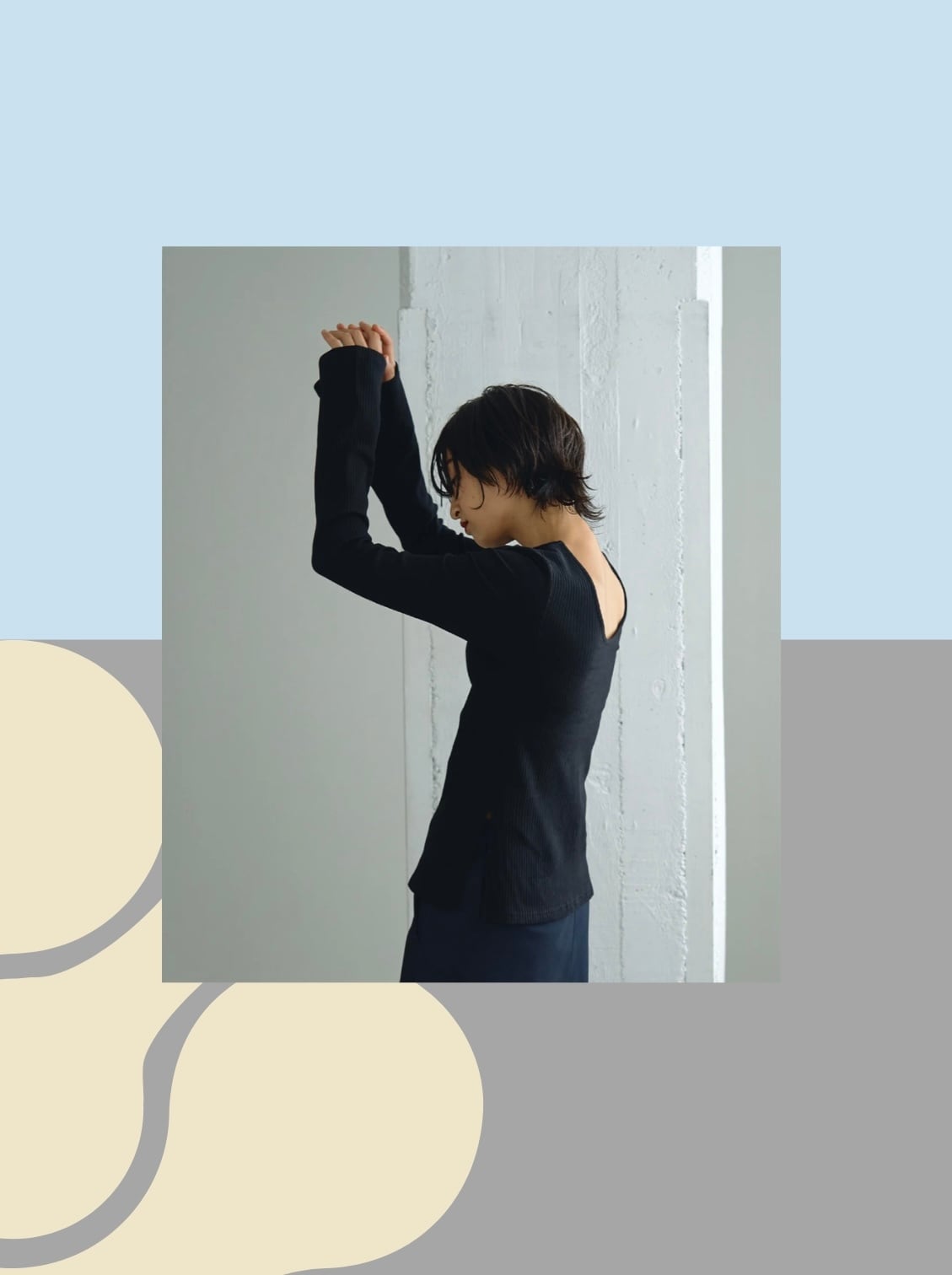 フレアスリーブバックオープンリブトップス