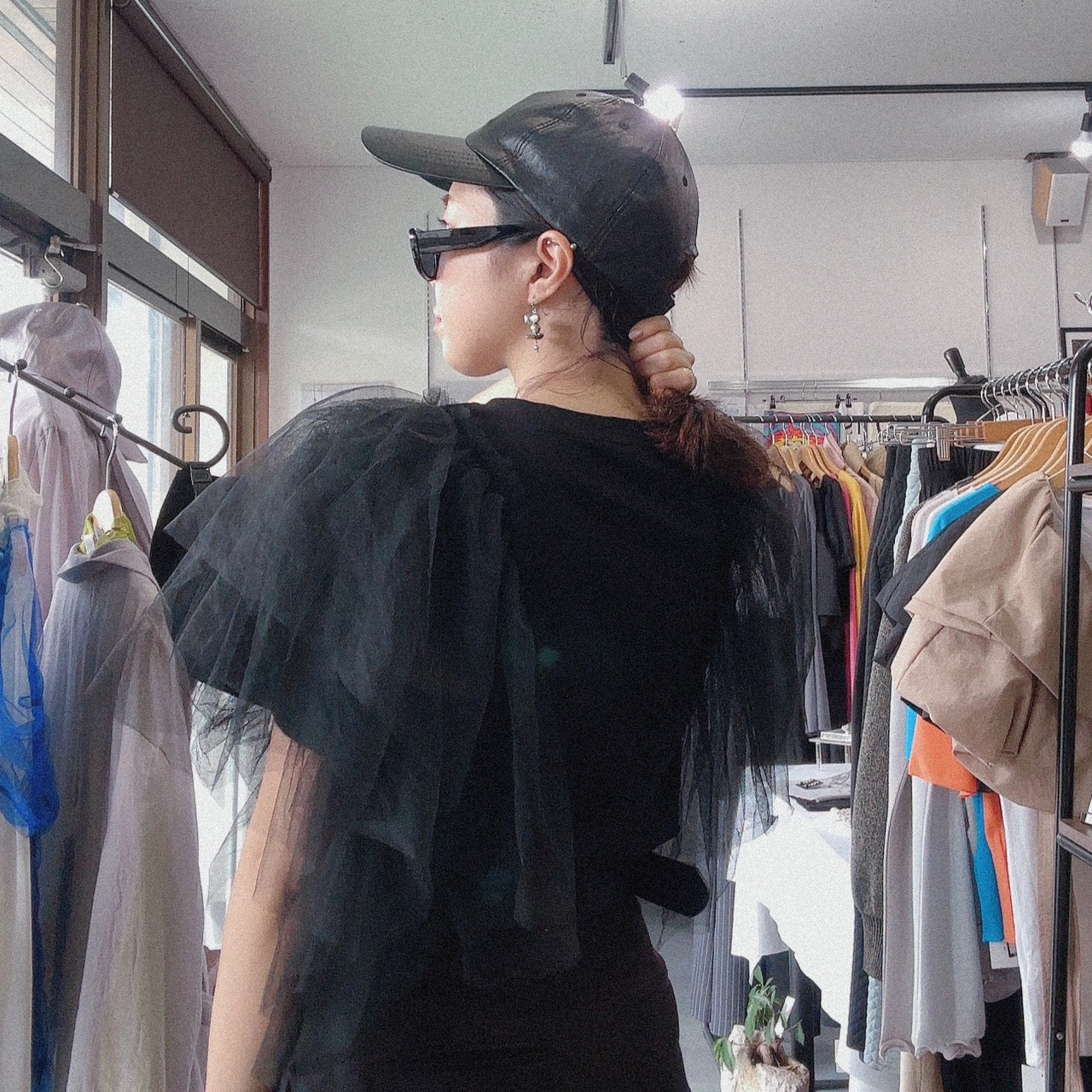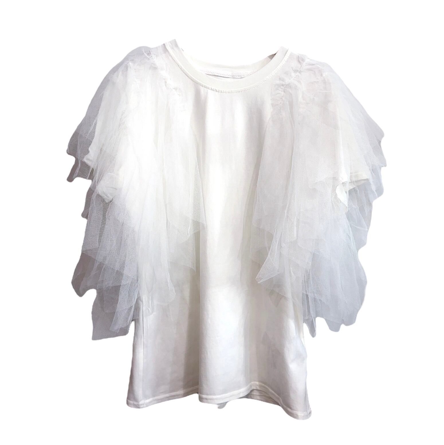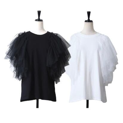 チュールが二の腕をカバーしてくれて体系カバーにも効果◎